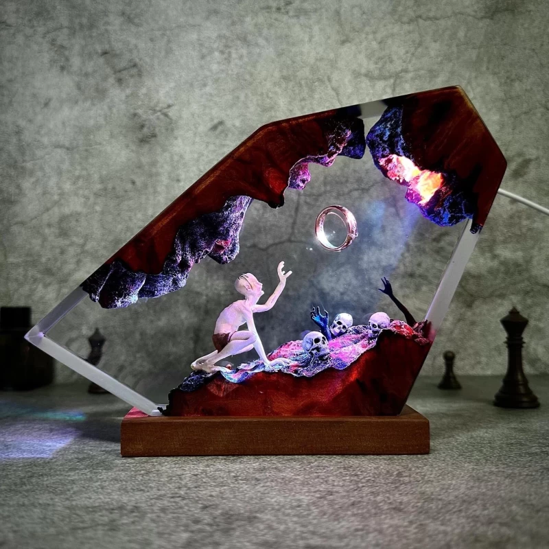 Inspired by the iconic imagery of The Lord of the Rings, this Creepy Skeletons and Ring LED Light Sculpture brings the essence of Middle-earth to life. Featuring a haunting scene with skeletons, a mysterious figure reaching for a glowing ring, and dramatic lighting, this unique sculpture captures the dark allure of the One Ring. Illuminated by colorful LED lights, it’s the perfect gothic decor piece for fans of the epic saga and lovers of dark, fantasy-inspired art. Ideal for adding a mysterious touch to any space or as a gift for collectors of The Lord of the Rings memorabilia.